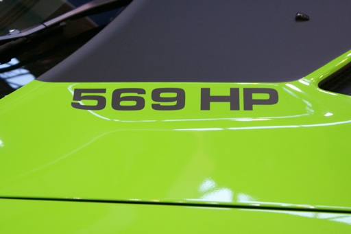 Den Antrieb des giftgrünen Challengers übernimmt ein Aggregat, das dank eines Geiger Kompressorkits 419 kW/ 569 PS liefert. Inklusive Montage sind für das Spezialtriebwerk knapp 15.000 Euro zu berappen.