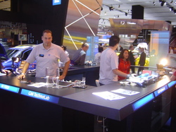 Lors du Salon de l’Automobile de Francfort, General Motors a eu la bonne idée de montrer un atelier autour des énergies renouvelables et des motorisations hybrides. Ainsi, les visiteurs ont pu s’informer sur la manière de prodduire de l’hydrogène, de l’emagasiner dans un réservoir spécial, d’alimenter une pile à combustible et de faire rouler un véhicule. Tout ceci fut démontré à l’aide de maquettes très ludiques, qui permettent de comprendre facilement le fonctionnement de ce que sera peut-t-être le mode de propulsion de nos voitures de demain.