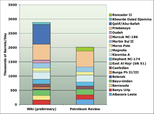 Stuart Staniford qui est consultant en énergie et plus particulièrement expert dans la menace du peak oil vient de faire une découverte intéressante: les chiffres censés représenter les nouvelles mises en exploitation de ressources pétrolières depuis 2003 jusqu’en 2012 et publiés par la revue « Petroleum Review » sont faux. Ils sous estiment les volumes annoncés de 30% à 50%. Courageusement, S.Staniford a ouvert un site sur Wikipedia (Oil Megaprojects) pour tenir à jour, champ par champ et par année de première production la liste analytique des exploitations de sources pétrolifères sous toutes leurs formes (pétrole, condensats, sables bitumineux,synthèses etc.) à l’exception des biocarburants