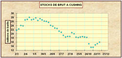 Mais le point clé qui explique le calme « olympien » des marchés c’est la lente remontée des stocks de brut à Cushing, malgré la baisse des stocks dans la zone du Golfe du Mexique. Ils étaient en fin de semaine dernière (S48) à 15,9 millions de barils, en croissance de 0,7 million.