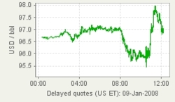 Le raffinage US en première semaine 2008 a utilisé près de 16 millions de barils de brut par jour avec un rendement au plus haut de quatre mois à 91.3%. Cette abondante consommation intermédiaire n’a pas été satisfaite par de timides importations de brut à 9.8 millions bl/j. Il en est résulté une baisse des stocks de brut de 6.7 millions de barils en une semaine, à 283 millions de barils, au plus bas depuis Octobre 2004. Par contre les stocks d’essence se sont appréciés de 5.2 millions de barils et ceux de fuel de 1.5 millions de barils. Les stocks de Propane ont poursuivi leur décroissance de saison à -3.1 millions de barils.