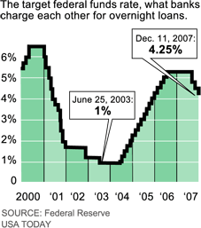 Le chemin semble grand ouvert pour une baisse dynamique et bienvenue des taux administrés par la FED. Une chose est maintenant sûre, la structure financière des banques américaines, reposant en partie sur des montagnes de dettes, à taux variables indexés, contractées par des citoyens américains plus ou moins fortunés, ne peut plus supporter des taux courts trop élevés (supérieurs à 3% ou 4% environ) sous peine de clochardiser de larges pans de la population et de les rendre insolvables. Il faudra que Ben Bernanke et les banques qui le conseillent s’en souviennent. La crise des hypothèques aurait été sûrement moins grave si la FED avait marqué une pose dans sa lancinante montée des taux de 25 points de base par mois, le premier Février 2006, date à laquelle Ben Bernanke à pris les rênes de cette honorable institution.