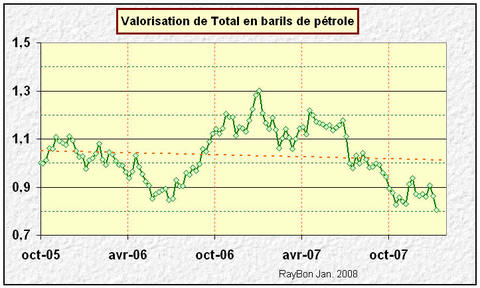 Alors l’action Total va mal: elle cote 0.8 barils de WTI à New-York. Un conseil: achetez, ça rapporte plus que le Livret de Caisse d’Epargne.