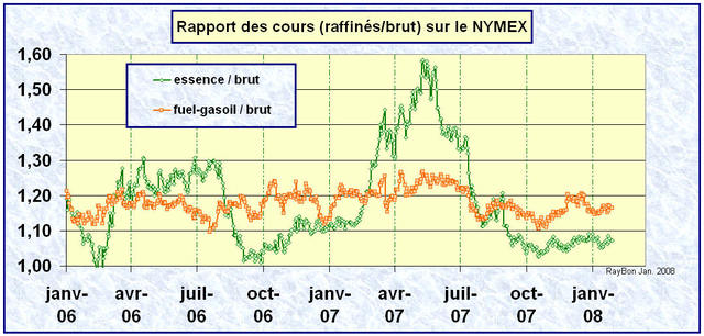 Ce résultat était attendu en raison de la faible marge dégagée sur les cours de l’essence aux Etats-Unis durant le quatrième trimestre 2007 (FIG.). La Bourse s’attendait même à bien pire puisque le cours de Valero à 60$ à New York, grimpe de près de 10%.