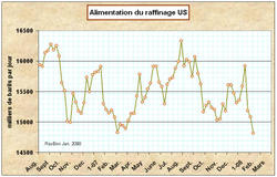 Le raffinage américain a pris, la semaine dernière, de l’avance pour se convertir aux spécifications d’été. Le volume traité correspond à celui qui l’était trois semaines plus tard l’an dernier. Les raffineries n’ont produit qu’à 85% de leur rendement, ce qui a fait monter les stocks de pétrole brut en amont du raffinage de 3,6 millions de barils. Les stocks d’essence, bien approvisionnés par les importations, se sont eux aussi gonflés de 3.6 millions de barils. Les stocks de fuel et de propane ont baissé respectivement de -1,5 et -3,1 millions de barils.