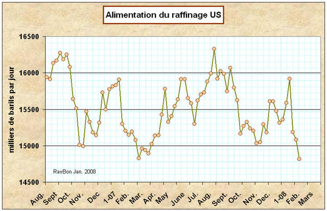 Ces résultats devraient détendre les cours du WTI qui semblent accrochés à 92$/baril pour on ne sait quelle raison, sinon pour un très faible niveau de stocks à Cushing.