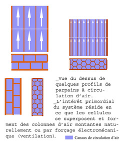 Voilà, là aussi une invention de C.Verna. C’est une ventilation des murs , qui sert à chauffer et à tempérer, mariable à un puit provençal, comme à une ventilation mécanique.