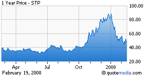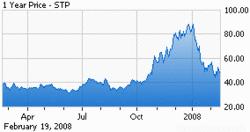 Alors le Marché, ce 20/02/2008, corrige le cours à la baisse de 21% à 36$ par action, lui qui venait de plus de 80$ en fin 2007 (Fig.).