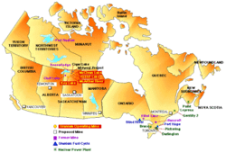 Bien fourni en gisement d’uranium (MC Clean lake, 690 Tonnes, Mc Arthur River 7193 Tonnes, avec celle prévue de Cigar lake pour 7000 tonnes et Midwest), le Canada veut encore les développer (l’autonomie du Nunavut, par exemple a été voté à cette intention là), même si certaines tournent à la galéjade et ne seront visiblement jamais exploitées.