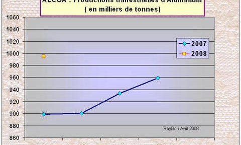 Les Gazettes et les Blogs répètent à l’envi que la baisse de 50% des résultats trimestriels d’Alcoa, une des premières Sociétés américaines à publier ses résultats trimestriels, est la preuve tangible de la progression sournoise de la crise au-delà de l’univers bancaire.