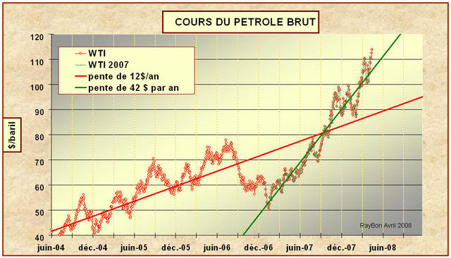 Rétrospectivement, malgré la chute stupide des cours à fin 2006 jusqu’à 50$ le baril (l’hiver était doux sur la totalité de l’hémisphère Nord) qui a donné lieu à un rapide rattrapage, la montée récente des cours au dessus de 110$ le baril (FIG.) appelle une nouvelle interrogation: le Marché va-t-il rechercher enfin une limitation de la demande pour se stabiliser à nouveau?