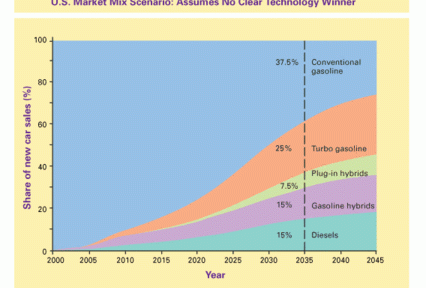 Dans le choix des technologies du MIT on voit apparaître les moteurs diesel aux USA, les voitures hybrides à essence, les véhicules plug-in hybrides qui sont des véhicules hybrides avec une plus grosse batterie que l’on peut recharger, des moteurs à essence améliorés et des moteurs classiques. Les voitures 100% électriques sont absentes de leurs hypothèses.