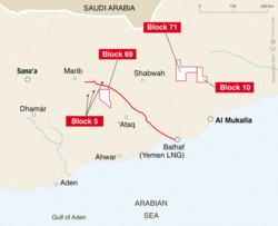 Ce projet qui avait été déjà annoncé par Total en Août 2005 aurait-il enfin trouvé son financement définitif? Il semblerait qu’un montant de 2,8 milliards de dollars, dont 1,1 milliards garantis par Total, ait été trouvé pour poursuivre le projet qui serait largement avancé. Rappelons qu’il concerne l’établissement d’une usine de liquéfaction dans le port de Balhaf au Yemen. Equipée de deux trains de liquéfaction, elle aura une capacité de production de 6,7 millions de tonnes de gaz par an. Trois contrats de fourniture de gaz ont déjà été signés avec Suez, Kogas et Total Gas. Le Groupe Total avec 42,9% des parts est associé à la Société d’Etat locale (23,1%), à l’américaine Hunt Oil Company (18%) et à deux groupes coréens (16%).