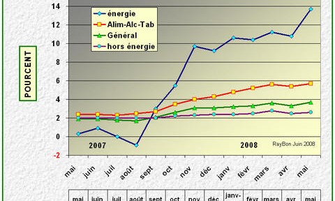 Le taux d’inflation annuel du mois de Mai de la Zone Euro, initialement prévu à 3,6%, ressort finalement à 3,7% tiré vers le haut par les prix délirants de l’énergie qui augmentent en 12 mois de 13,7% (FIG.) le seul poste transport explique 1,8 points de la hausse. La France avec 3,7% se trouve à la moyenne de la Zone Euro, l’Allemagne ressort en dessous (3,1%) et l’Espagne nettement au dessus avec 4,7%. Cette inflation est tout de même inférieure à celle des Etats-Unis qui est ressortie au mois de mai à 4,18% avec un poste énergie en croissance de 17,4%.