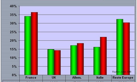 EDF grâce à sa technologie et ses parts de marché en Europe, devrait être un bateau de course, mais dans les faits elle ressemble d’avantage à un sombre vraquier, trop chargé par l’Etat. Au premier semestre pour un chiffre d’affaire à 32 milliards d’euros, en croissance de 6,4% par rapport à celui du premier semestre 2007, elle affiche un résultat net de 3 milliards, en décroissance de 12,2%. Comment EDF explique-t-elle ce grand écart? Ce sont pour une grande partie les contraintes françaises, sur la partie la plus rentable d’EDF, qui sont invoquées, « malgré l’augmentation de la production électrique d’origine nucléaire et hydraulique (+7 TWh) ». Les résultats sont impactés par « la hausse des achats d’énergie et de combustibles, liée pour partie à un coût croissant des obligations d’achat et de pertes de réseau. En outre, les charges d’exploitation sont marquées par les effets attendus des mesures d’accompagnement de la réforme du régime des retraites et des programmes de maintenance. » Les opérations italiennes voient également leurs résultats régresser (FIG.).