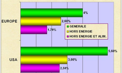Avec une composante énergétique en hausse de 29% en un an (elle n’était que de 25% le mois précédent) l’inflation américaine atteint le record de 5,6% en un an. Hors énergie cette inflation est de 3% et  hors énergie et alimentation elle apparaît à 2,5% (FIG.) niveau élevé de l’inflation sous-jacente par rapport à celle de la Zone Euro qui ressort à 1,7%. L’Europe a profité de la valorisation de l’euro et des taxes associées aux carburants qui ont amorti les augmentations de prix de l’énergie à 17% pour la Zone Euro.