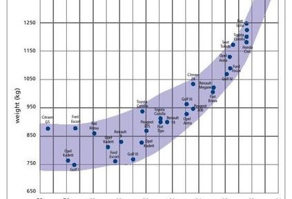 Dans les modèles d’entrée de gamme, censés être les plus sobres, des divers constructeurs il en est très peu dont la masse soit inférieure à une tonne (FIG.). La « short list » comprend la Smart, la C1 de Citroën, la 107 de Peugeot, l’Aygo de Toyota et la Fiat 500.