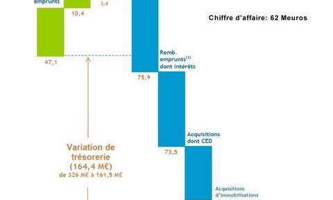 Par ailleurs, les dépenses de Théolia ne s’élève pas à 160 M€. Mais Théolia a dépensé 160 M€ de plus que ses entrée de trésorerie. Par ailleurs, ce n’est pas le BFR de Théolia qui est de 76 M€, mais