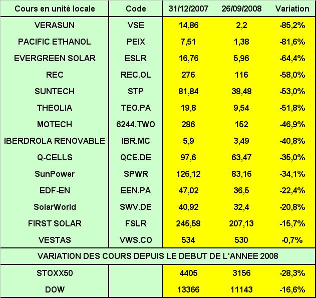 Ces variations n’ont pas amélioré le score du secteur des énergies renouvelables (TAB.)