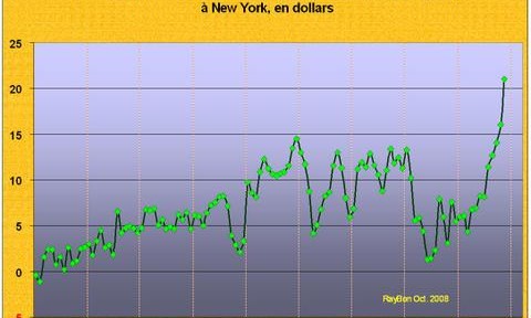 Par des temps où la disponibilité de Cash est argument de pérennité pour une entreprise, où les cours du pétrole supérieurs à 90$/baril assurent une formidable rentabilité aux investissements pétroliers et où des mécanismes de cartels, tels que celui de l’OPEP, empêcheront toute éventuelle baisse excessive des cours, on pourrait assurer que notre « champion national » du pétrole, Total, est une valeur refuge en ces périodes troublées. Or, il n’en est rien. Son cours en dollars à Wall Street n’arrête pas de se dégrader et à perdre du terrain par rapport au benchmark de la profession qu’est Exxon Mobil (FIG.). Le cours de l’action TOTAL se comporte comme celui d’une Société régionale de taille moyenne, sorte de Mid-Cap mal aimée du pétrole.