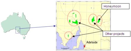 Uranium Ore, Société cotée à Toronto et à Johannesburg, extrait annuellement dans les 900 tonnes d’oxyde d’uranium de ses diverses mines dans le monde. Elle vient de faire rentrer le japonais Mitsui dans le développement et l’exploitation de ses ressources du sud de l’Australie, situées au nord du port d’Adélaïde (FIG.). Cette association, 51% Uranium Ore et 49% Mitsui , va tout d’abord mettre en production à l’horizon 2009 ou 2010 la mine de Honeymoon qui fait partie de la transaction. Cette mine devrait permettre de produire 400 tonnes d’oxyde d’uranium par an, pendant six ans.