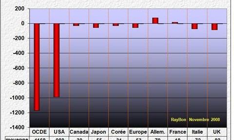 Les statistiques de l’Energy Information Administration nous apprennent que les consommations de pétrole de tous les grands pays de l’OCDE ont baissé au mois de Juillet par rapport à l’an dernier, à l’exception de l’Italie (+41 mille bl/jour) et de la très écologique Allemagne (+134 mille bl/jour). L’ensemble des pays de l’OCDE affiche pour le mois de Juillet, une consommation en baisse de 1,6 millions de barils/jour par rapport à l’an dernier. Cette baisse se décompose en 1,3 millions de barils/jour provenant des USA et 0,3 millions attribuables aux autres pays de l’OCDE.