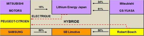 Il est bien fini le temps ou seul le moteur diesel devait sauver le monde. C’est un virage à 180 degrés que la stratégie de PSA vient de prendre. Tout d’abord en confirmant avec Mitsubishi Motors et GS Yuasa sa volonté d’utiliser le système batterie et la motorisation de la i-Miev pour disposer d’un véhicule 100% électrique dont la totalité ou au moins une grosse partie des composants (système batterie, électronique de puissance et de contrôle, moteur, etc.) proviendrait du Japon. Mais aussi en signant avec Robert Bosch pour développer le véhicule hybride qui lui manque. PSA conserve une certaine cohérence avec sa stratégie ancienne : le véhicule sera hybride et diesel. Mais Robert Bosch ne dispose pas de la technologie des batteries comme le montre son alliance récente avec Samsung (FIG.) qui devrait, un jour, lui permettre de combler cette lacune. Il faudra donc aller chercher une batterie Ni-MH ou Li-Ion au Japon pour ce nouvel hybride.