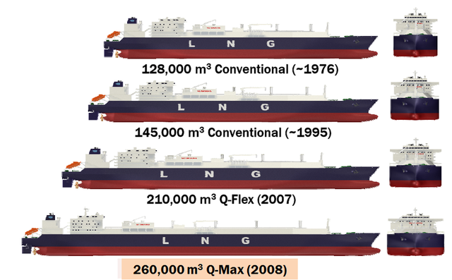 Sur l’initiative de Qatar Petroleum et d’Exxon Mobil six nouveaux méthaniers de type Q-Max vont être mis en service. Trois construits au Japon par Mitsubishi Heavy et trois en Corée par Daewoo Shipbuilding. Leurs capacités de transport sont respectivement de 266 et 263 mille m3 de gaz naturel liquéfié. Les caractéristiques principales de ces navires, outre leur gigantisme avec une capacité d’emport 25% supérieure à celle de la génération précédente, sont leur capacité de reliquéfier à bord les gaz évaporés, ce qui permet de livrer tout le chargement initial de gaz même après un long parcours jusqu’aux USA et leur propulsion par deux moteurs diesel à bas régime. Le coût de transport du m3 de gaz est ainsi réduit de 20 à 30%.