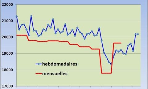 Remarque: au mois d’Octobre les volumes de kérosène consommés aux USA sont en baisse de 15% par rapport à ceux du même mois en 2007. Ce résultat est à rapprocher à la décision de certaines compagnies aériennes de mettre hors service, à l’issue de la saison d’été, un certain nombre d’avions d’un grand âge, trop consommateurs en carburants.