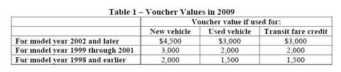 Les Parlementaires américains espèrent ainsi que 500 mille à un million de véhicules très pollueurs pourraient être ainsi retirés chaque année du parc automobile américain et remplacés par des véhicules peu polluants qualifiés pour ce programme. D’après l’ACEEE (American Council for en Energy Efficient Economy) il existe aux Etats-Unis 11 millions de véhicules qui ont une autonomie de moins de 18 miles/gallon (ou qui présentent une consommation de plus de 235/18= 13 litres aux cent kilomètres) éligibles pour ce programme de mise à la casse. Ce sont essentiellement des pick-up, des 4X4 et des SUV’s produits entre 1990 et 2006. Ils représentent 5 pourcents du parc automobile américain.