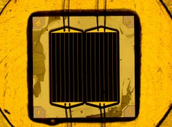 Entre l’énergie photovoltaïque la plus simple, obtenue par irradiation sous le soleil d’un module tapissé de cellules élémentaires de silicium par exemple, et l’énergie solaire thermique obtenue par concentration des rayons lumineux sur un capteur thermique, un tube de quartz dans lequel circule un liquide caloporteur par exemple (LIRE), il existe des technologies hybrides qui consistent à focaliser des rayons lumineux sur une toute petite surface d’une cellule photovoltaïque: c’est l’énergie photovoltaïque par concentration. Cette technique repose sur l’existence de cellules solaires complexes à multiples jonctions, du type phosphure de gallium et d’indium, arséniure d’indium et de gallium, germanium par exemple, qui ont la propriété d’absorber pratiquement toutes les radiations du spectre solaire et de présenter un rendement de conversion photoélectrique de 41,1% pour les meilleures d’entre elles, comme celle de 5 mm2 de surface du Fraunhofer Institut Solare allemand (LIRE) qui vient de battre le record du monde.