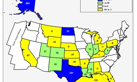 Quand aux réserves prouvées de pétrole, elles se sont accrues d’un petit 2% (+0,35 milliards de barils) pour atteindre 21,3 milliards de barils. Les plus grands progrès ont été enregistrés en Alaska, au Texas et dans un Etat en plein développement le Dakota du Nord (FIG.). Ce dernier profite du développement d’un gisement de schistes, la Formation de Bakken qui produit après fracturation du pétrole léger.