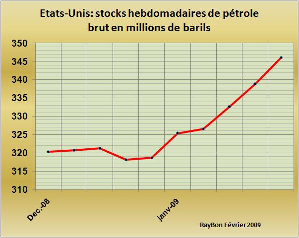 La poursuite insatiable des importations de pétrole aux Etats-Unis se poursuit. La spéculation stocke du brut depuis le début de l’année (FIG.) pour le revendre à terme, 7 millions de barils en plus la semaine dernière. Mais les stocks englobant la totalité des produits n’ont crû que de 2 millions de barils, réserve stratégique comprise. Cela veut dire que la consommation en produits raffinés (20,3 millions de barils/jour, exportations comprises) est soutenue et supérieure à la somme des productions du raffinage, éthanol compris, et des importations. Alors les stocks de fuel et de propane baissent avec le froid. Ceux d’essence restent stables. La spéculation sait bien que ces montées de stocks de brut ne veulent rien dire, que l’OPEP doit être prise de plus en plus au sérieux et que l’Iran joue avec le feu avec ses pétards qu’il envoie dans l’azur. Alors les cours du Brent et du WTI montent.