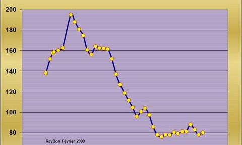 Mais les milieux professionnels sont très pessimistes pour les mois à venir en raison de la crise mondiale et à plus long terme en raison des problèmes écologiques et de la concurrence du gaz naturel. BHP Billiton par exemple, un des plus gros exportateurs de charbon dans le monde, estime que sa filiale d’Afrique du Sud produira 34 millions de tonnes en 2009 qu’il faut comparer aux 48 millions de tonnes produites en 2008. En Indonésie, entre Décembre et Janvier les exportations de charbon ont reculé de 35% à 8,8 millions de tonnes. Les reculs sont rapides et profonds. Les prix, étrangement stabilisés dans le port Australien de Newcastle, pourraient donc poursuivre leur repli vers une plage 50$ à 65$ la tonne disent les spécialistes de ces marchés.