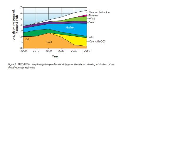 L‘Electric Power Research Institute (EPRI) et l’Idaho National Laboratory (INL) viennent de publier un Plan Stratégique de Recherche et Développement dans le domaine des activités énergétiques nucléaires civiles. Ils placent tout d’abord leur action dans le cadre des objectifs de réduction vigoureuse des émissions de CO2 au niveau de 1990 en 2020 et d’une réduction supplémentaire de 80% en 2050. La traduction de ces objectifs dans le mix énergétique de production d’électricité américain, réalisé par une analyse appelée PRISM (FIG.), implique un accroissement des parts du nucléaire dans le mix de 20% à 40% entre aujourd’hui et 2050. Dans ce scénario, pour la première fois aux Etats-Unis, il est affirmé par un organisme officiel que malgré l’accroissement des énergies renouvelables, malgré la disponibilité des moyens de capture et de stockage du CO2 (CCS) pour 10$ la tonne de CO2, il sera indispensable de faire croître la part d’électricité d’origine nucléaire au cours du XXIème siècle. Les temps changent!