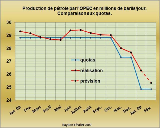 Les volumes produits sont inférieurs de plus de 4 millions de barils/jour à ce qu’ils étaient au mois de Juillet dernier, époque, souvenez-vous, où le monde entier allait manquer de pétrole! Ce résultat remarquable est attribuable tout d’abord à l’Arabie Saoudite qui a décidé coûte que coûte d’assécher le marché de ses stocks pléthoriques et qui produit 7,9 millions de barils/jour en dessous de son quota de 8,05 millions. Mais elle est suivie par les Emirats, par le Koweït et par globalement tous les membres du Cartel qui adhèrent à cette stricte politique. De plus, une prochaine décision au mois de Mars, de baisse des volumes de production n’est pas impensable aujourd’hui. Cette détermination des membres de l’OPEP semble en surprendre plus d’un qui jusque là négligeaient les décisions du Cartel, en pensant qu’elles ne seraient pas appliquées dans les faits.