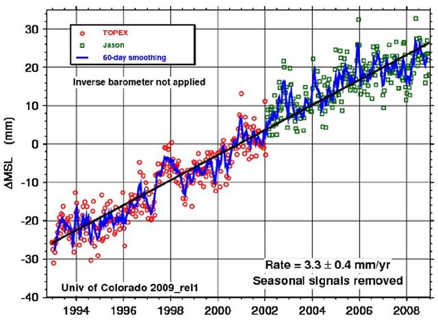 FIG.II: Le niveau moyen des mers monte de 3,3 mm par an: