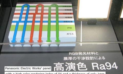 En ce tout début du mois de Mars, c’est le Salon de l’éclairage à Tokyo, bonne occasion pour que chacun présente ses produits du futur. Parmi les plus remarqués on peut citer le panneau de diodes électroluminescentes organiques (OLED) d’un mm d’épaisseur de Panasonic Electric Works (FIG.). Cet exemple illustre comment par enduction de motifs organiques semi-conducteurs de plusieurs couleurs émises, il est possible d’obtenir un écran éclairant d’une parfaite blancheur. Un index de rendu de couleur de 94 équivaut à l’éclairage d’un corps noir porté à près de 6000°, c’est quasiment la surface du soleil. Les OLED vont entrer dans notre monde tout d’abord sous formes d’écrans plats les plus divers (téléphones, systèmes GPS, ordinateurs, télévision) puis sous formes de panneaux lumineux dont les couleurs pourront varier au gré des impressions de couches minces appliquées artistiquement sur un substrat transparent.