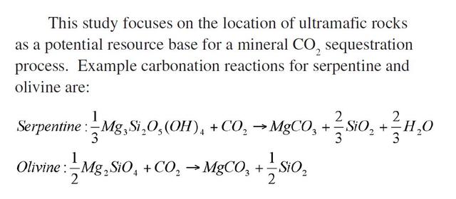 Certains de ces minéraux comme la Serpentine et l’Olivine par exemple réagissent avec le CO2 pour former du carbonate de magnésium (FIG.II)