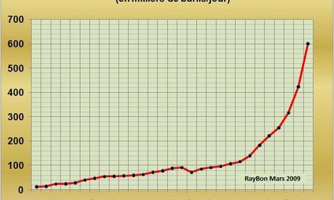 L‘industrie de l’éthanol de maïs américaine a vécu, comme bien d’autres, une année 2008 agitée. Prise en ciseau entre des cours du maïs manipulés par la spéculation sur les matières premières agricoles durant les huit premiers mois et les cours de l’éthanol en chute libre en fin d’année, accompagnant la chute des cours de l’essence, nombreux sont ceux qui ont du fermer des usines ou même se mettre en faillite. Ce fut le cas de VERASUN victime de ses achats à terme de maïs au plus haut. Malgré ces vicissitudes, la production moyenne d’éthanol a atteint 600 mille barils par jour en 2008 (FIG.) avec des flux de production de plus de 700 mille barils par jour au mois de Décembre. Les volumes produits ont été multipliés par six durant les 8 ans de l’Administration Bush.Ethanolusaprod19802008