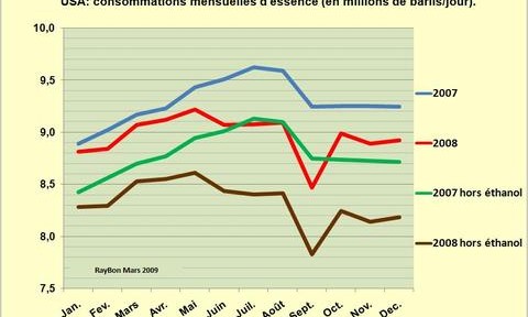 L’évolution des gammes de voitures plus sobres en carburants, la diésélisation du parc, les diverses primes à la casse, l’arrivée des modèles hybrides, le développement des biocarburants, l’amélioration des infrastructures routières vont pousser vers le bas les consommations d’essence dans tous les pays de l’OCDE. C’est cette décroissance vertueuse qui assurera la décroissance mondiale des consommations de pétrole dans les décennies à venir.