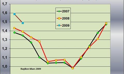 RTE nous apprend que la consommation nette d’électricité en France a atteint 41,7 TWh au mois de Février et 90,9 TWh en cumulé sur Janvier et Février. Ce dernier résultat est en augmentation de 7% par rapport à celui de l’an dernier où la consommation nette cumulée avait atteint 84,7 TWh (FIG.). La raison principale de cette embellie: la baisse des températures qui a effacé tous les reculs de consommations dues à la faible activité économique. Cette forte progression des consommations devrait permettre à EDF de présenter au mois d’Avril prochain, un Chiffre d’Affaire trimestriel en bonne hausse pour la France. Au mois de Février 90,5% de l’électricité produite en France n’a pas généré de CO2. Le solde des échanges d’énergie électrique avec nos voisins européens est resté positif et à atteint 6 TWh en cumulé pour les deux premiers mois de l’année.