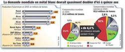 « La demande mondiale de métal blanc devrait doubler d’ici quinze ans » titrait, il y a de cela deux ou trois ans, un de nos grands journaux économiques, rapporteur d’échos à sensation. Et le superbe diagramme illustrant cet article prévoyait une croissance annuelle de consommation d’Aluminium de 4,4% pendant 15 ans, passant de 31,6 millions de tonnes en 2005 à 60,6 millions de tonnes en 2020. En ce printemps 2009, le lecteur qui paie bien cher son abonnement, peut se poser des questions sur la pertinence de ces « prévisions ». De façon plus sérieuse, la production mondiale d’Aluminium en 2007 était estimée par Rio Tinto à 39 millions de tonnes. Les statistiques de l’International Aluminium Institute indiquent une croissance des productions de ses adhérents en 2008 par rapport à 2007 de 3,6%. On peut donc estimer la production mondiale d’Aluminium de première fusion en 2008 à un peu plus de 40 millions de tonnes. La totalité de ces productions n’a pas du être vendue en raison du ralentissement de la demande dès le quatrième trimestre 2008, une partie a donc du se retrouver dans les stocks.