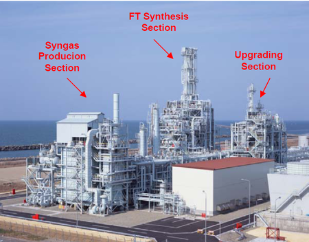 A partir de 2005 une usine de démonstration a été mise en étude et lancée en réalisation (FIG.I) Elle vient d’être inaugurée en grandes pompes à Niigata. Cette unité est capable de produire 500 barils par jour de produits pétroliers. Elle peut utiliser des gaz naturels comprenant entre 20% et 40% de CO2. C’est avec elle que le consortium va pouvoir valider des solutions industrielles.