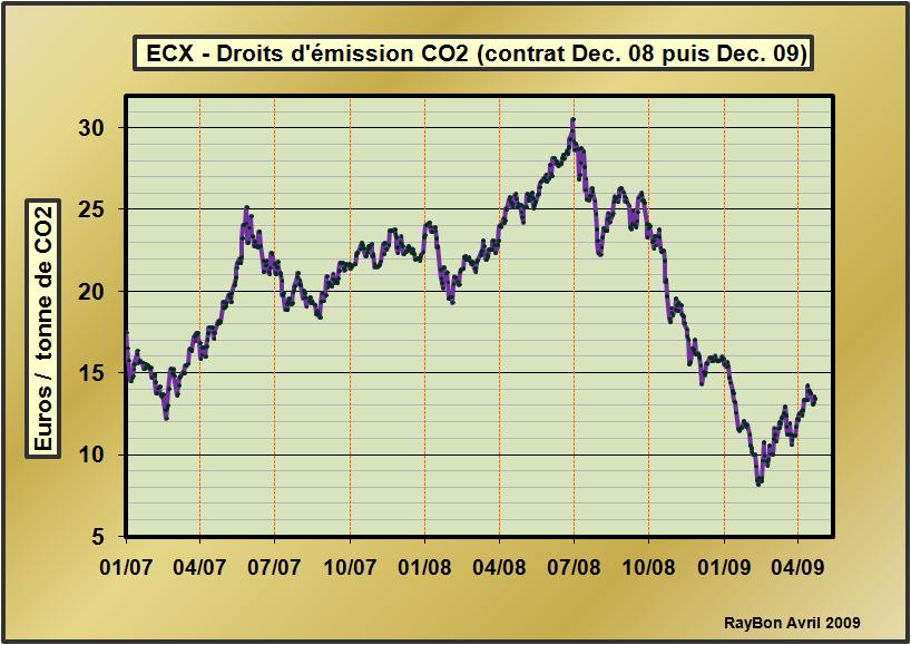1)- La principale raison provient du fait que les cours qui s’établissent ne sont pas régis par l’offre et la demande physique d’un marché de professionnels, mais par l’offre et la demande de la spéculation qui domine les marchés des commodities. Un exemple simple: hier les cours du pétrole ont pris 2 dollars par baril parce que la demande des spéculateurs a été activée par la baisse du dollar, le papier pétrole servant de couverture à la baisse du dollar. Ce n’est pas la demande en pétrole qui est importante, c’est la demande de papier adossé à ce pétrole. Pour le CO2 les cours sont liés à ceux des commodities, les prix ont baissé jusqu’en Février 2009 malgré la réduction du nombre de droits d’émissions en 2008, ils tendent à remonter maintenant avec les cours de l’énergie et des matières premières. Il s’est traité au mois de Février sur l’ECX à Londres, 447 millions de tonnes de CO2, alors que l’Europe n’a du en émettre que 320 et que 110 à 120 millions de tonnes environ correspondent aux émissions des Sociétés surveillées par le CITL dont seulement une partie (30%) fait l’objet de transactions de la part des professionnels sur divers marchés. En d’autres termes, 95% des échanges du marché du CO2 sont animées par la spéculation !