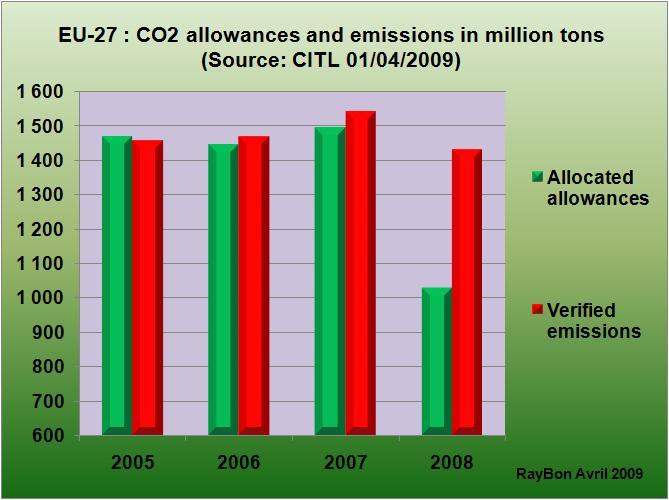 L‘idée était belle et libérale. Il suffisait de faire jouer les lois de l’offre et de la demande de droits d’émissions de CO2 alloués chichement chaque année par le « Régulateur » public et complétés par les industries vertueuses ayant réduit fortement leurs émissions polluantes. Du côté de la demande, les industries polluantes, dépassant leurs quotas de droits d’émissions gratuits, avaient l’obligation d’acheter ces droits. Le tout devait se dérouler harmonieusement sur un marché équilibré et impartial. Or, a posteriori, de plus en plus de voix s’élèvent pour mettre en doute l’efficacité du système en place. Les résultats sur les réductions d’émissions de CO2 en Europe jusqu’à la mi-2008 étaient très décevants, seule la crise, réduisant l’activité économique, va faire croire en trompe l’oeil que le système en place aura fait décroître les émissions de CO2 en 2008 et 2009.