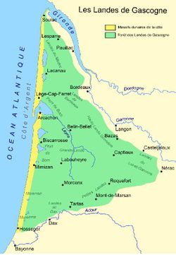 Cette forêt plantée au XIXème siècle présente une surface boisée de 550 mille hectares, à 90% de pin maritime. Le volume de bois sur pied est estimé par la DDA de la Forêt des Landes à 82 millions de m3 de conifères et 12 millions de m3 de feuillus. La production de bois en 2005 a été de 4,2 millions de m3. Sur la base d’une densité de bois sec de 0,55 (mélange de pin et de chêne) et d’une énergie de combustion de 5000 kWh par tonne de bois sec (ou 18 Gjoule par tonne), il serait possible en brûlant tout le bois produit par la Forêt des Landes d’obtenir une énergie thermique de 11,5 TWh par an.