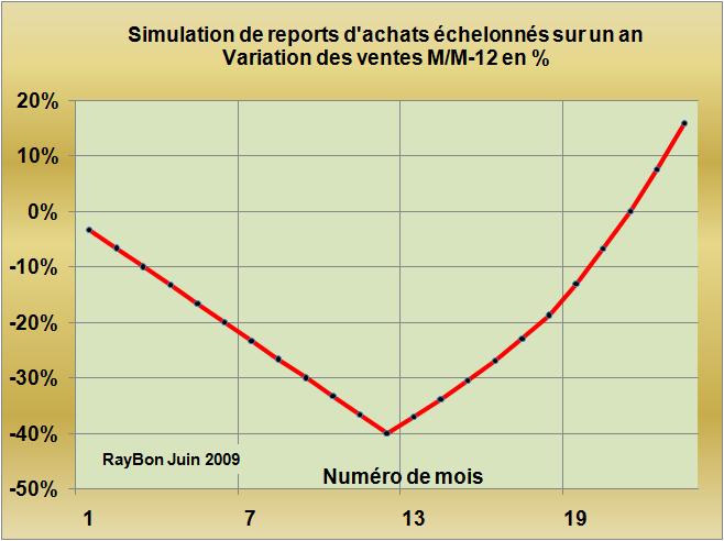 Cet exercice montre simplement l’impact dévastateur des reports de décision d’achat sur un segment de l’économie. Dans un tout autre domaine, les démographes connaissent bien les effets positifs d’anticipation de naissances (baby-boom) ou négatifs de report de naissance (deuxième transition démographique actuelle) sur le résultat de la natalité par pays.