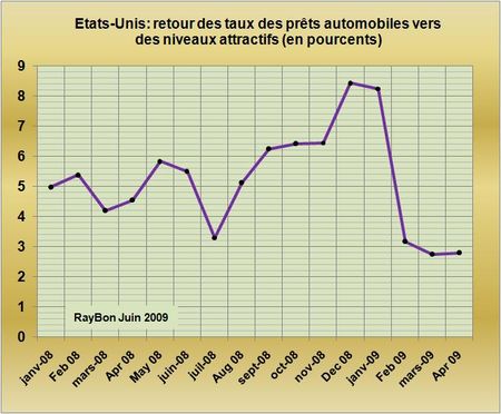Il a été souligné ici combien l’impact sur le marché automobile d’un report des décisions d’achats par une minorité de consommateurs pouvait avoir un effet destructeur sur la demande et donc sur la santé économique du secteur (LIRE). Seule une politique agressive sur les conditions financières (prix, primes diverses, conditions de prêts) pouvait à court terme casser ce phénomène de report. Les primes à la casse mises en oeuvre par divers pays européens illustrent parfaitement cet effet. Les Etats-Unis n’ont pas encore eu recours à ce mécanisme bien que soit en discussion au Sénat un éventuel programme « cash for clunkers » qui pourrait aller jusqu’à 4500$ d’avoir par voiture mise à la casse. Mais l’Administration Obama a tout de même fortement agi sur les conditions financières permettant de retrouver des taux du crédit automobile plus favorables.