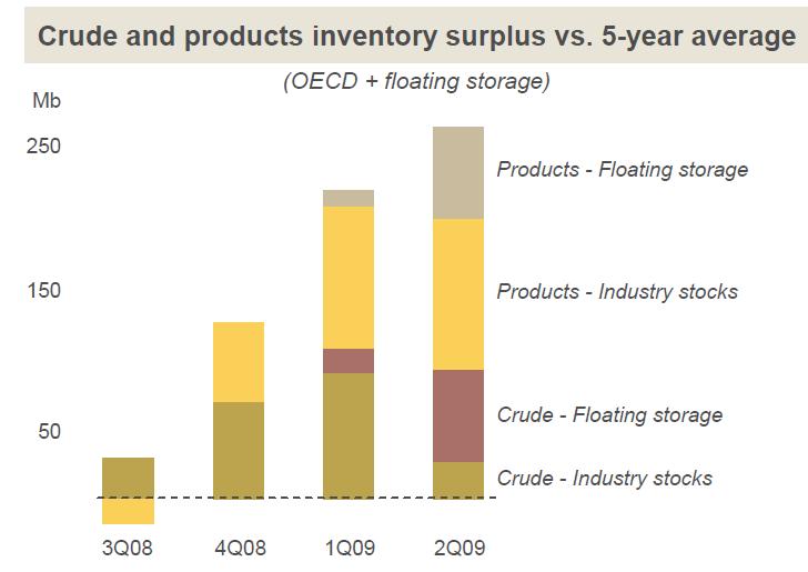 1) les stocks de produits pétroliers au sein de l’OCDE ne cessent de croître depuis près d’un an: